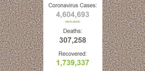 শুক্রবার ওয়ার্ল্ডোমিটার জানিয়েছে, এ পর্যন্ত মরণঘাতি করোনা ভাইরাসে আক্রান্ত হয়েছেন ৪৬ লাখ ৪ হাজার ৬৯৩ জন। মোট মারা গেছেন ৩ লাখ ৭ হাজার ২৫৮ জন। এছাড়া সুস্থ হয়েছেন ১৭ লাখ ৩৯ হাজার ৩৩৭ জন।