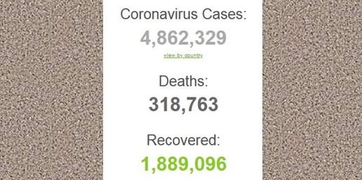 সোমবার ওয়ার্ল্ডোমিটার জানিয়েছে, এ পর্যন্ত মরণঘাতি করোনা ভাইরাসে আক্রান্ত হয়েছেন ৪৮ লাখ ৬২ হাজার ৩২৯ জন। মোট মারা গেছেন ৩ লাখ ১৮ হাজার ৭৬৩ জন। এছাড়া সুস্থ হয়েছেন ১৮ লাখ ৮৯ হাজার ৯৬ জন।