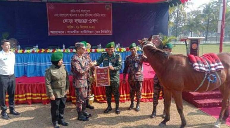 নিউজ ডেস্ক: ভারতে পাচারকালে সাতক্ষীরার বাঁশদাহ সীমান্ত থেকে আটককৃত একটি আরাবিয়ান রেসের ঘোড়া বাংলাদেশ আনসার ও গ্রাম প্রতিরক্ষা বাহিনীর কাছে…