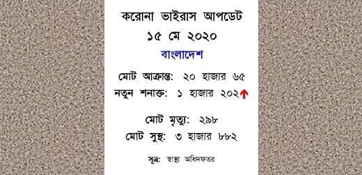 গত ২৪ ঘন্টায় দেশে নতুন করে করোনা ভাইরাসে আক্রান্ত হয়েছেন ১ হাজার ৬০২ জন। বর্তমানে করোনা রোগীর মোট সংখ্যা ২৩…