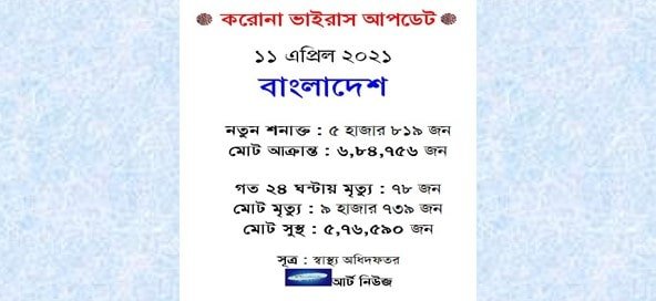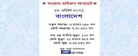 ১১ এপ্রিল ২০২১ (নিউজ ডেস্ক): গত ২৪ ঘন্টায় দেশে করোনায় আরও ৭৮ জন মারা গেছেন। গতকালের চেয়ে আজ ১ জন…