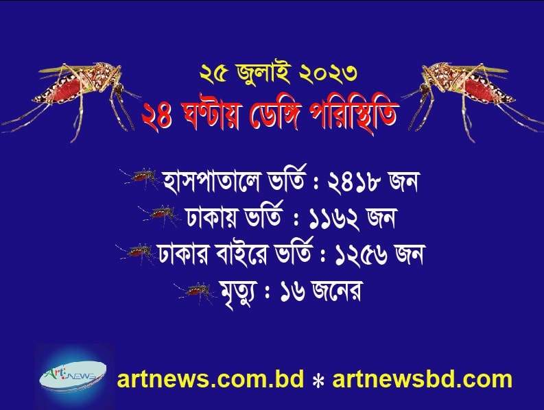 নিউজ ডেস্ক: দেশে ডেঙ্গিতে আক্রান্ত হয়ে এক দিনে আরও ১৬ জনের মৃত্যু হয়েছে। গত ২৪ ঘণ্টায় (গতকাল সোমবার সকাল ৮টা…