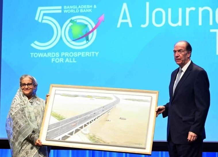 নিউজ ডেস্ক: বিশ্বব্যাংক প্রেসিডেন্ট ডেভিড মালপাসকে পদ্মাসেতুর একটি বাঁধাই করা ছবি উপহার দিয়েছেন প্রধানমন্ত্রী শেখ হাসিনা। ছবিটির শিল্পী মনিরুজ্জামান। তার…
