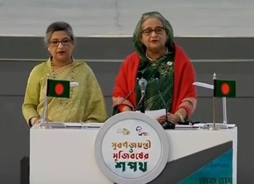 ১৬ ডিসেম্বর ২০২১ (নিউজ ডেস্ক): বাংলাদেশের স্বাধীনতার সুবর্ণজয়ন্তী ও মুজিববর্ষ উপলক্ষে দেশের সর্বস্তরের মানুষকে শপথবাক্য পাঠ করিয়েছেন প্রধানমন্ত্রী শেখ হাসিনা।…