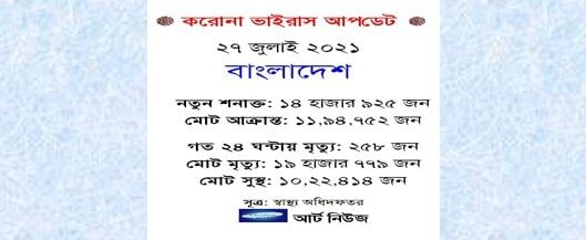 ২৭ জুলাই ২০২১ (নিউজ ডেস্ক): করোনা ভাইরাসে একদিনে মৃত্যুর সব রেকর্ড ছাড়িয়ে গেছে। মরণঘাতি এই ভাইরাসে গত ২৪ ঘন্টায় মারা…