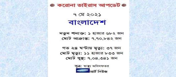 ৭ মে ২০২১ (নিউজ ডেস্ক): কোভিড-১৯ রোগে মৃতের সংখ্যা কমেছে। গত একমাসের মধ্যে সর্বনিম্ন সংখ্যক মৃত্যু হয়েছে গত ২৪ ঘন্টায়।…