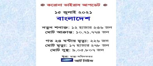 ১৫ জুলাই ২০২১ (নিউজ ডেস্ক): দেশে করোনা ভাইরাসে মৃত্যুর দ্বিতীয় সর্বোচ্চ রেকর্ড হয়েছে। গত ২৪ ঘন্টায় আরও ২২৬ জন মারা…