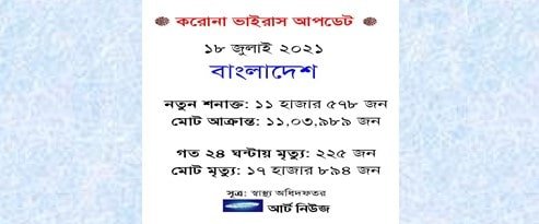 ১৯ জুলাই ২০২১ (নিউজ ডেস্ক): দেশে করোনা ভাইরাসে মৃত্যুর নতুন রেকর্ড হয়েছে। মৃতের সংখ্যা ছাড়িয়েছে ১৮ হাজার। গত ২৪ ঘন্টায়…