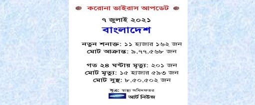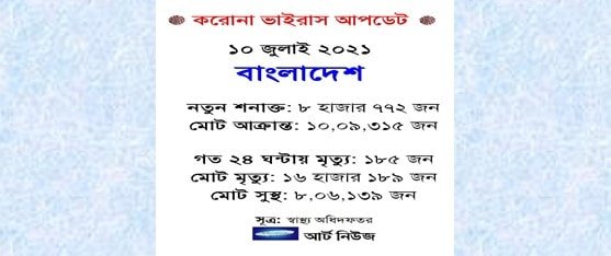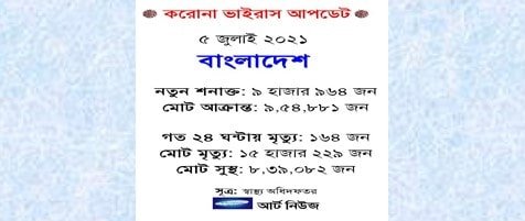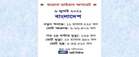 ১০ জুলাই ২০২১ (নিউজ ডেস্ক): ১০ জুলাই ২০২১ (নিউজ ডেস্ক): দেশে করোনা ভাইরাসে গত ২৪ ঘন্টায় আরও ১৮৫ জন মারা…
