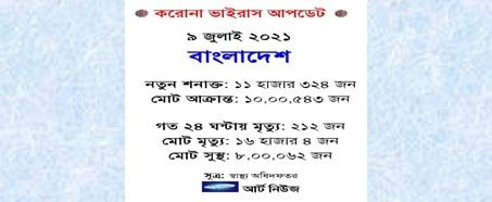 ৯ জুলাই ২০২১ (নিউজ ডেস্ক): দেশে করোনা ভাইরাসে আক্রান্ত মানুষের সংখ্যা ১০ লাখ ছাড়িয়েছে এবং মৃত্যু সংখ্যা ১৬ হাজার। ৪…